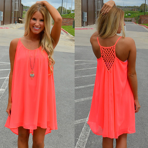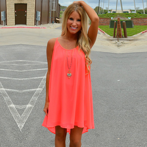 This pretty dress has a relaxed flair thanks to its loose style and skin-friendly chiffon fabric.