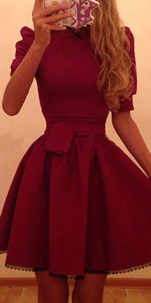 This dress features solid color style,with chic puff sleeve design,making it look more attractive.