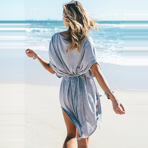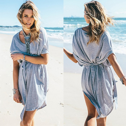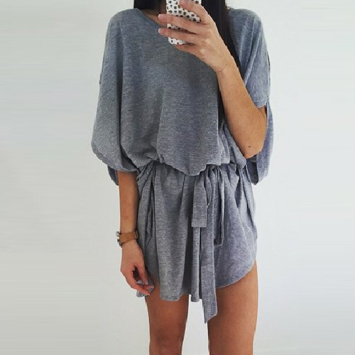 and breathable cotton material. Solid color,with round neck and bat sleeve