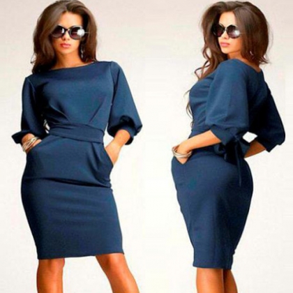 Solid color style,looks generous and dignified. Half sleeve,round neck and