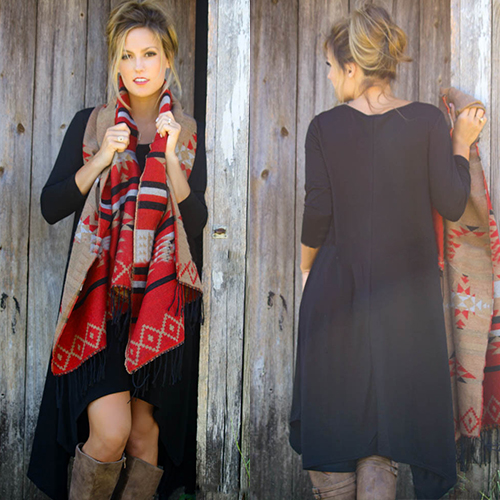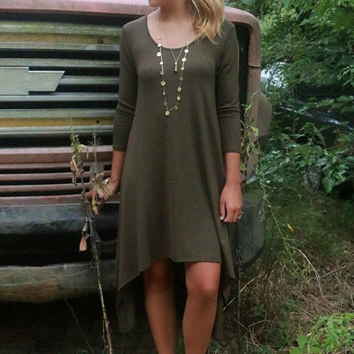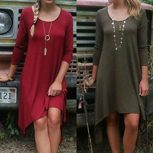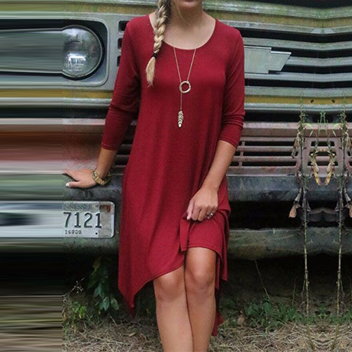 With skin-friendly fabric, the dress is comfortable to wear. Solid color, round neck with long sleeve