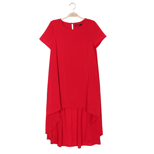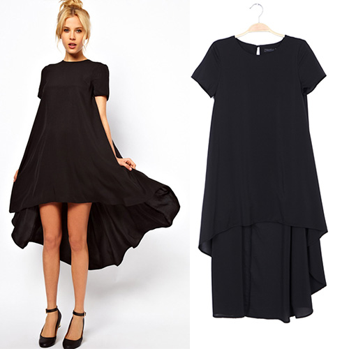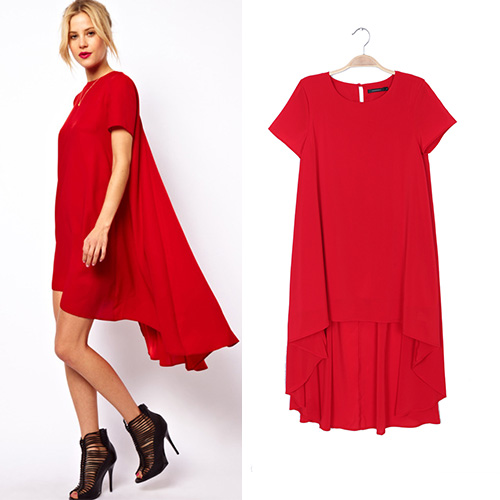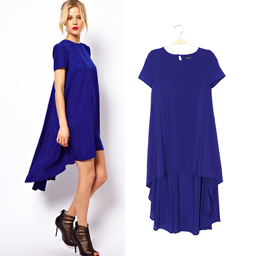 Show your chic and fashion style with this dress. It features solid color style,fashion round neck and short sleeve design. Unique irregular hemline make it more unique. A good choice for you in summer.