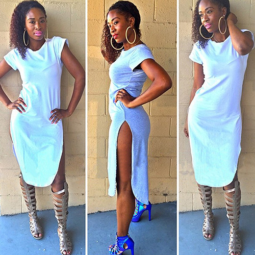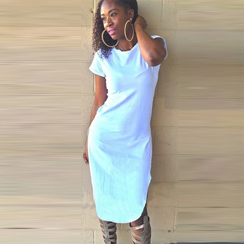 and endless styling options. Solid color style,with a round neck and irregular hemline design,simple