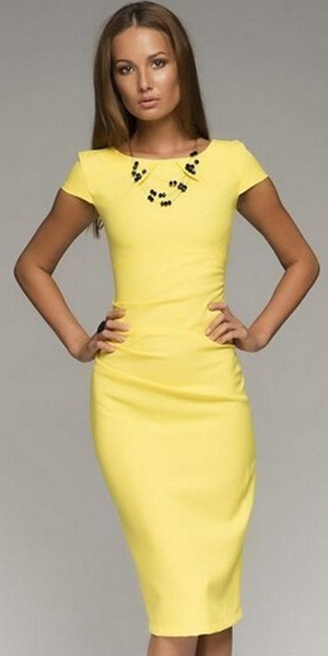 This dress features solid color style,looks elegant and generous. Short sleeve,round neck