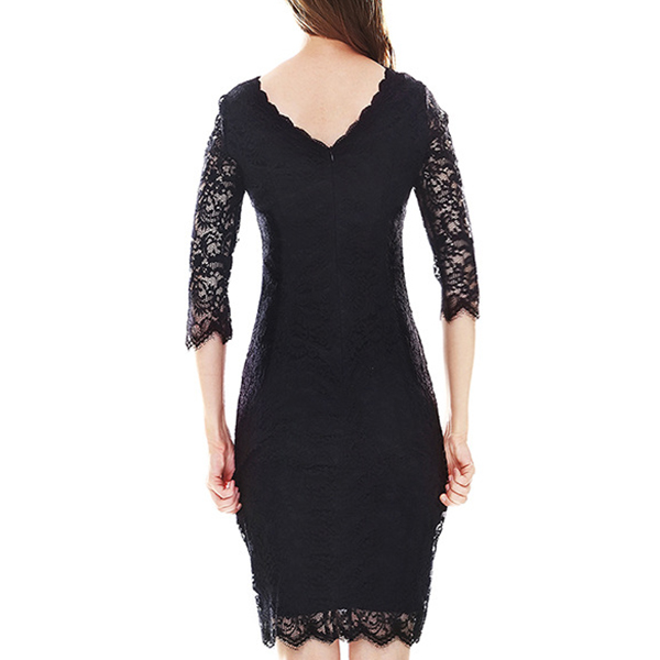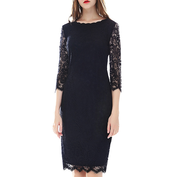 Fashion Solid Color Short Sleeve Slim Fit Lace Dress