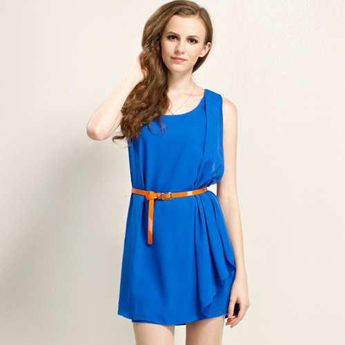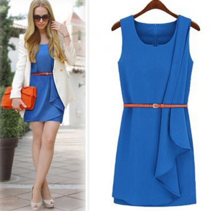 This dress features bright blue color,can set off you fair skin. Unique and irregular hemline
