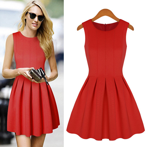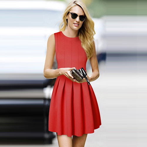 This dress features solid color style,looks generous and elegant. Sleeveless,