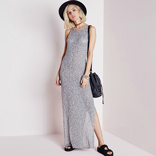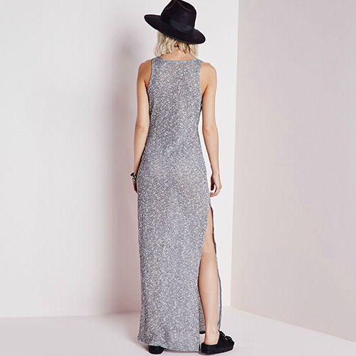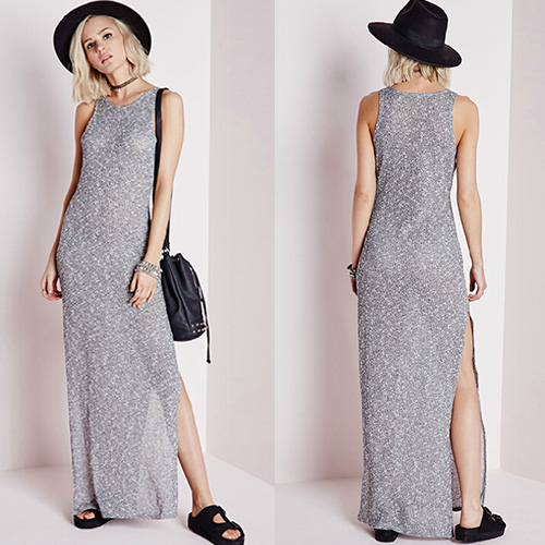 finished with sleeveless,round neck and slit hemline. Show your street-chic style with this dress.