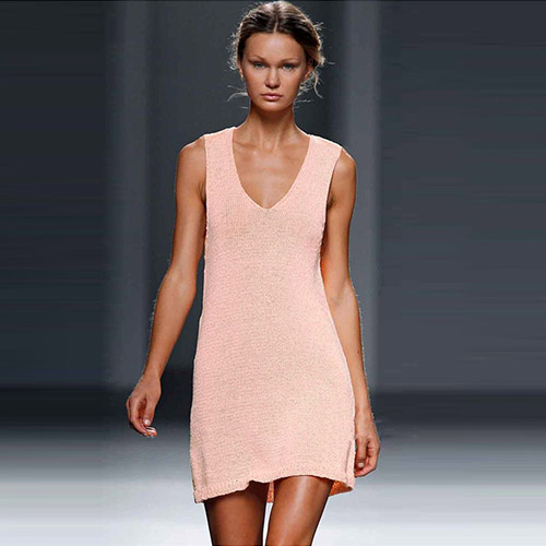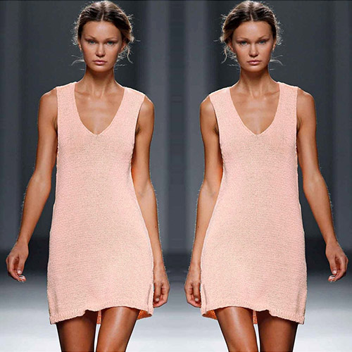 Such a chic and fashion dress! Knitted style,with solid color,sleeveless and v-neck design.