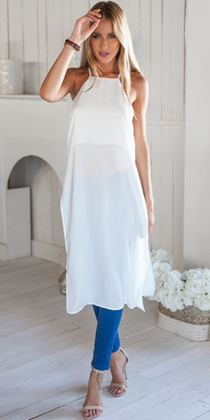 Such a chic and stylish dress! Sling style,with solid color and side with high slit design.