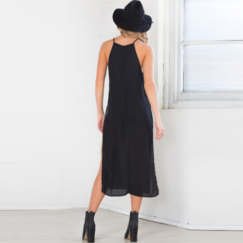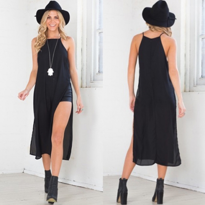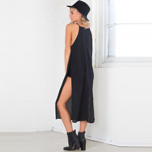 flattering black color,with slit hemline and off-shoulder design adds some sexy flavor.