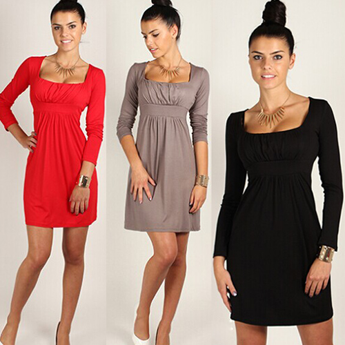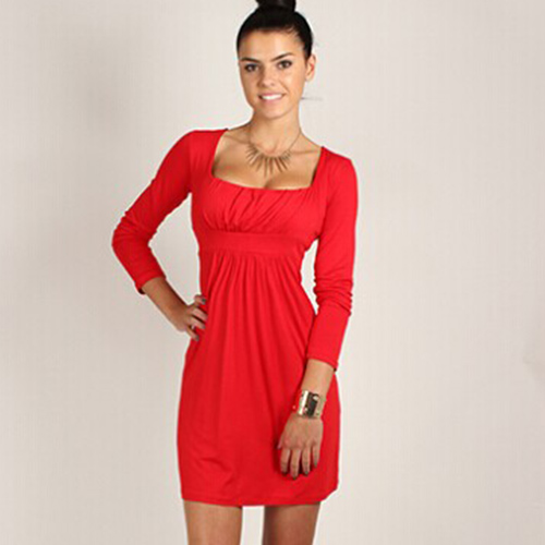 This dress features solid color design,looks elegant and generous. Long sleeve,