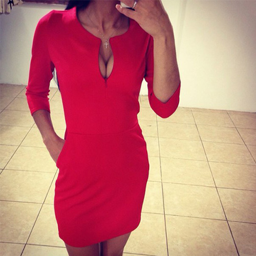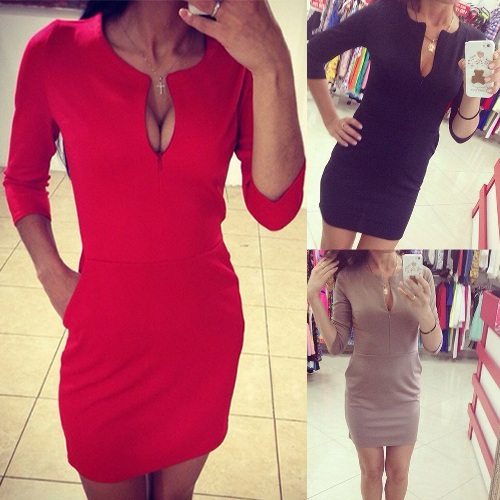 This dress features solid color style,elegant and dignified. Sexy v-neck and 3/4 sleeve design. Slim fit and package hip,perfect outline your charming figure.