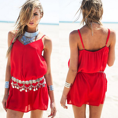 Crafted from breezy chiffon material,with a v-neckline,elastic waist and adjustable cami straps.