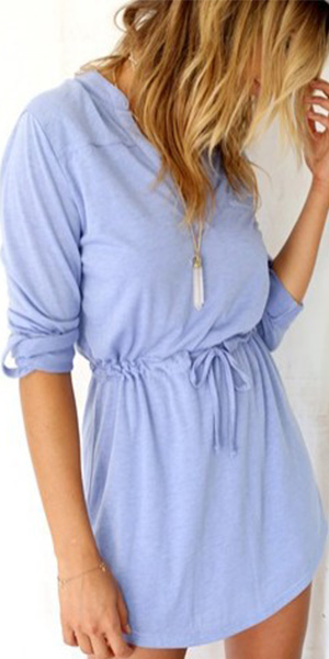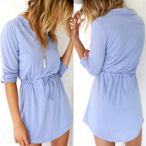This dress features solid color style,with long sleeve,v-neck and waist part with lace-up design,