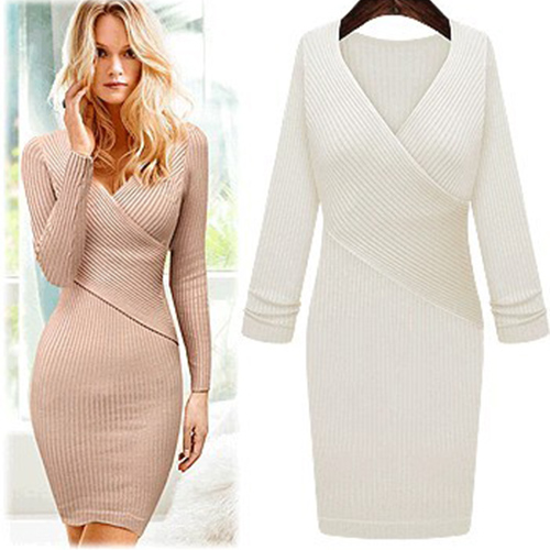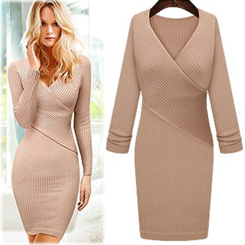 dress is specially designed for you. Solid color,long sleeve,v-neck and slim