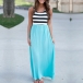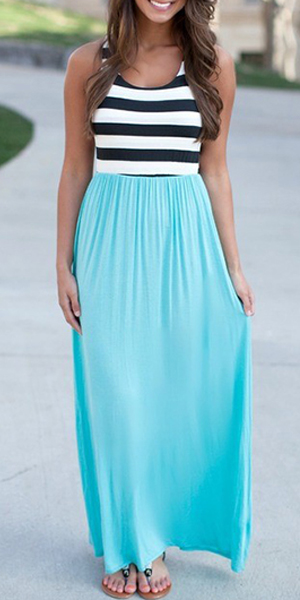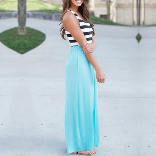 your sun-kissed shoulders in style. Striped spliced style,with sleeveless and round neck design. You