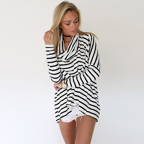 Crafted from cotton material,soft,close to skin and comfortable to wear. With stripes pattern,turtleneck,