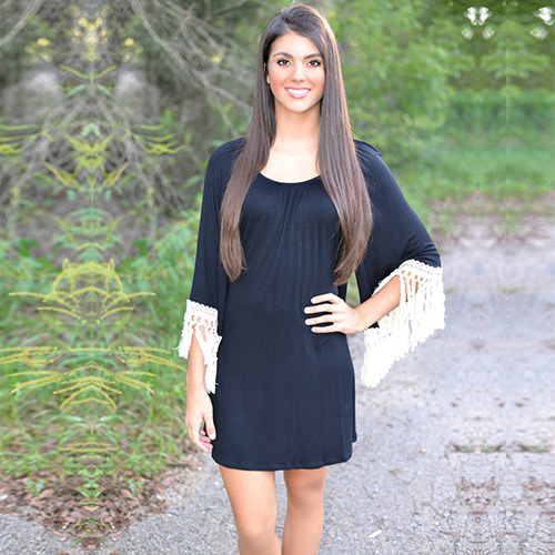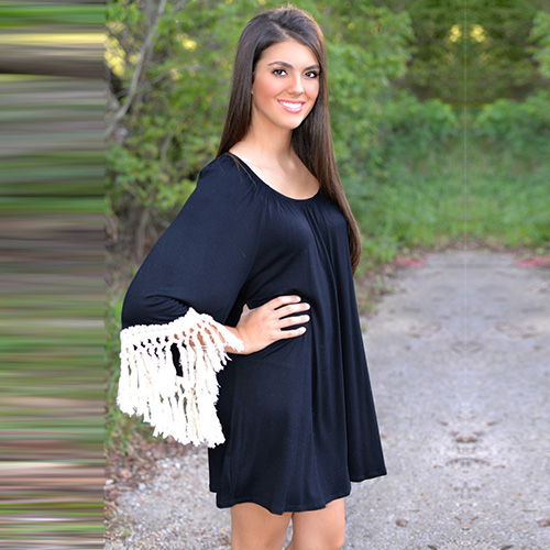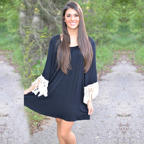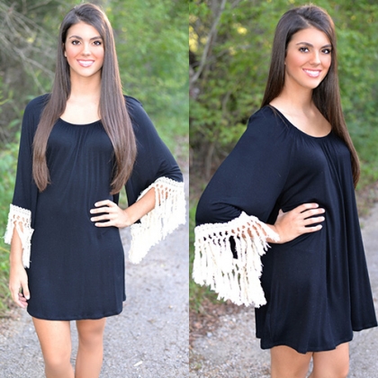and trumpet sleeve design,cuff with tassel spliced design makes it more chic. It is a perfect choice for your