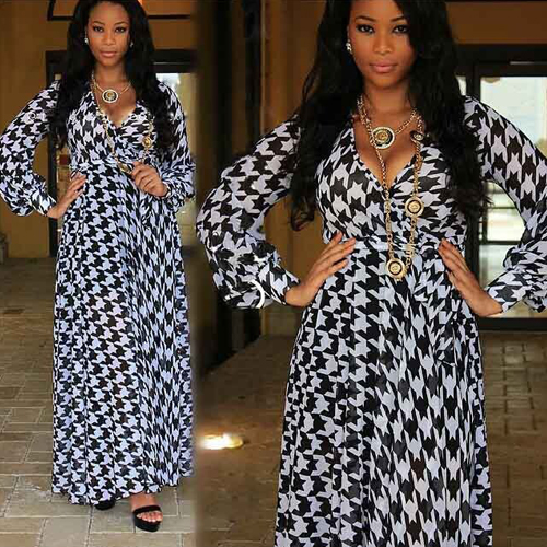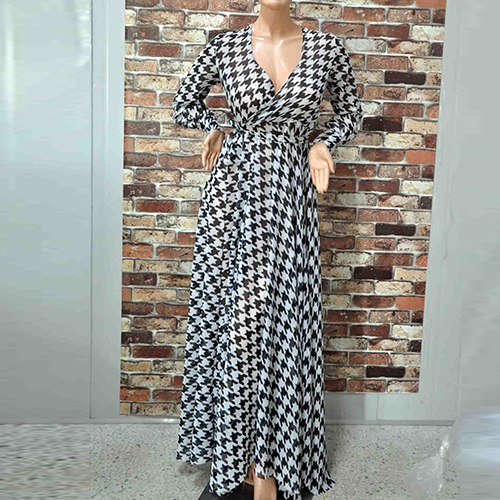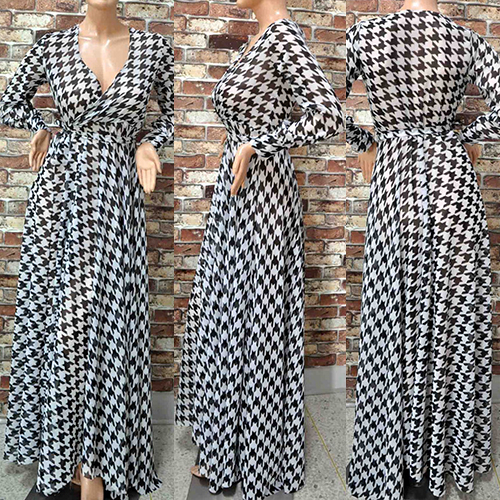 Houndstooth style,filled with stylish and chic elements. It features sexy v-neck,