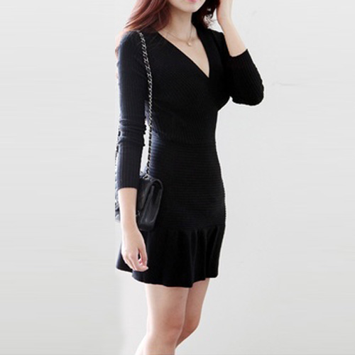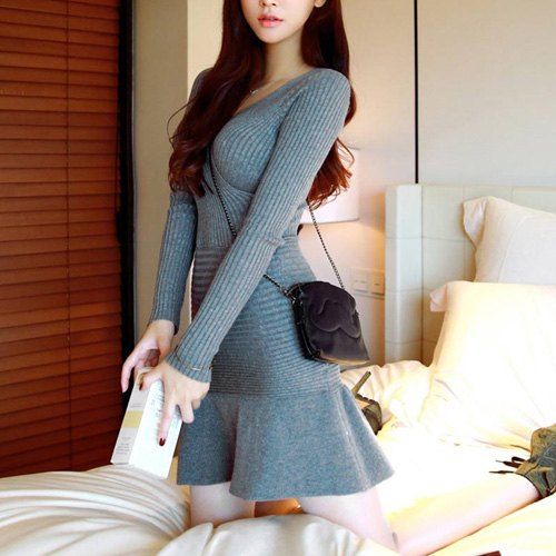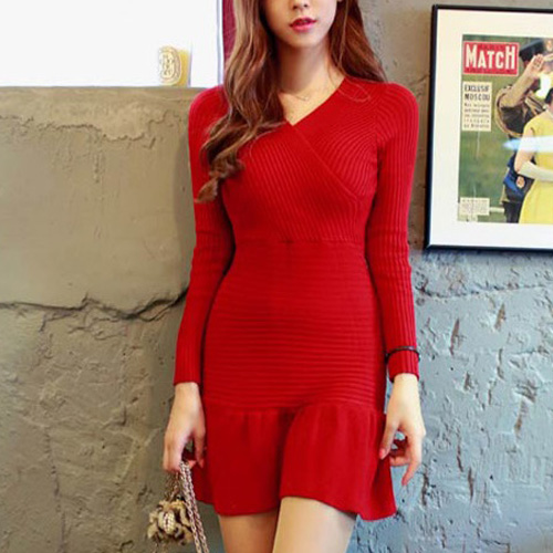 with long sleeve,v-neck and flouncing hemline,sweet and sexy. Slim fit and package hip design,perfect set