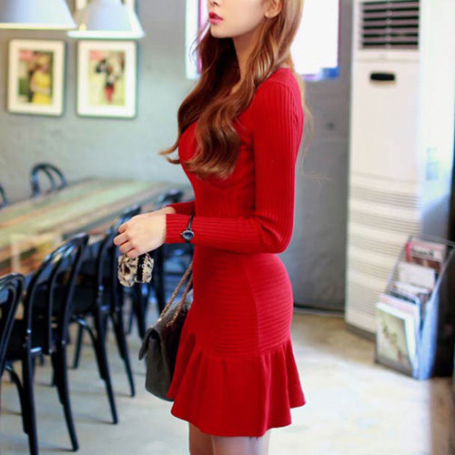You will can't wait to want to buy this knitted dress when your first time seeing it. It features solid color style,