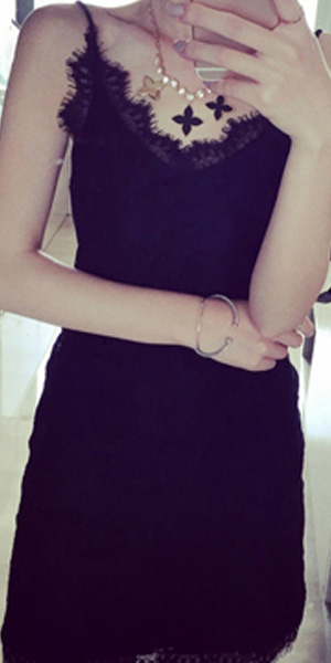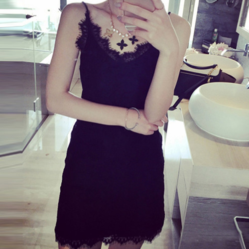 Fashion V-neck Slim Fit Sling Lace Dress