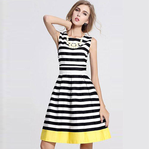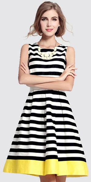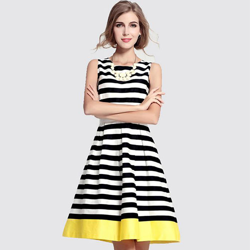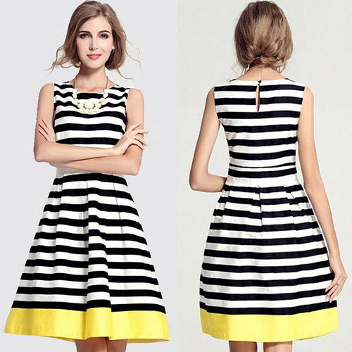 Striped design makes you looking slender and the mix of white and black is a classic match.