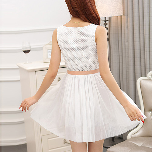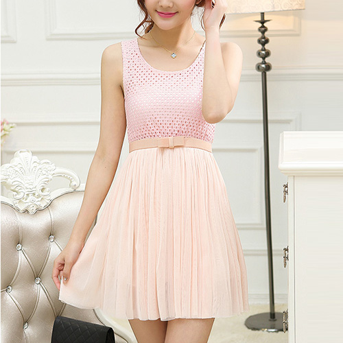 and chiffon,with solid color design,filled with fashion and sexy elements. Sleeveless,round neck,