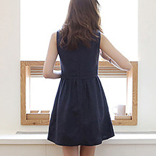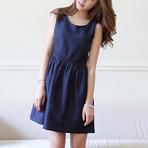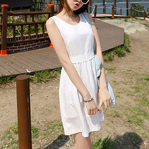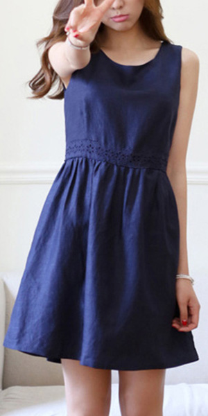 You look so fresh and sweet in this dress. Solid color style,with sleeveless,round neck