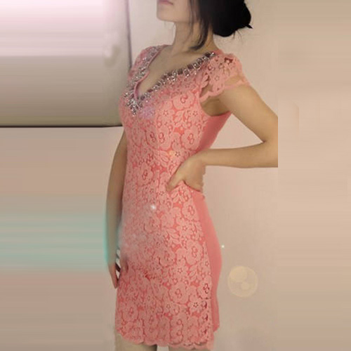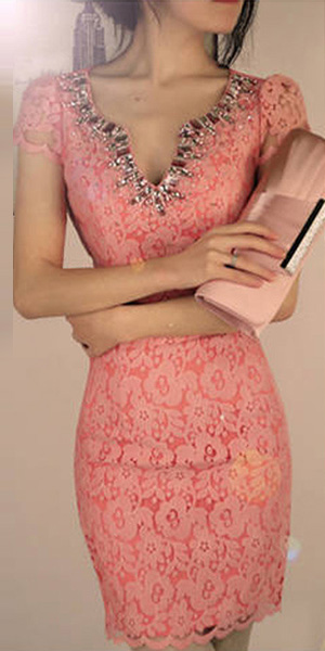 Deep v-neck design,with sparkly rhinestone for decoration,making it look so luxurious