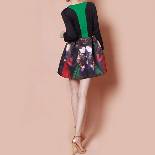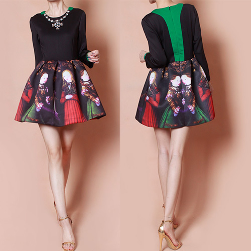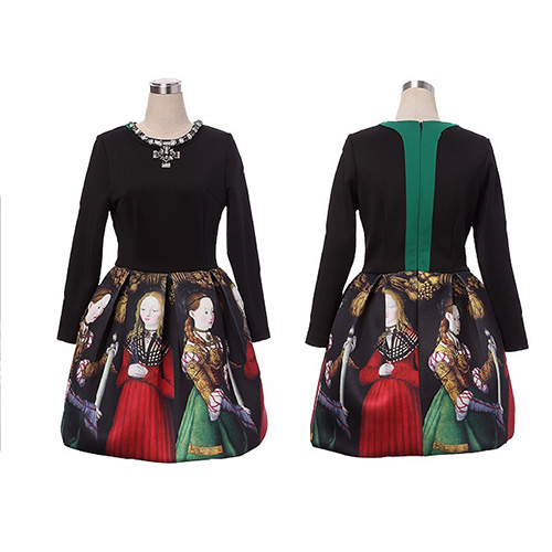 Your noble flavor and elegant temperament will shine in this dress. It features fashion round neck,with luxurious rhinestone for decoration. Hemline with noble women floral print pattern. Long sleeve and gathered waist design,showing your charming curve.