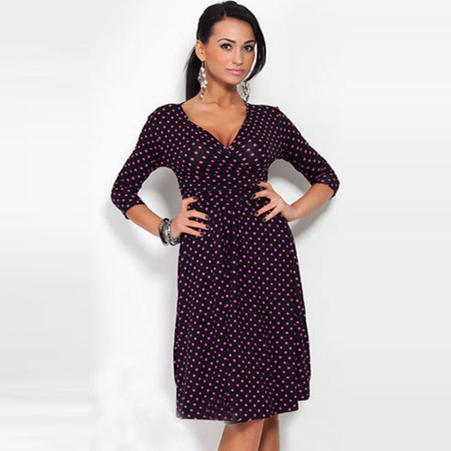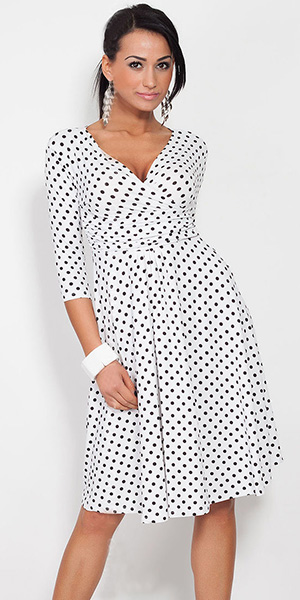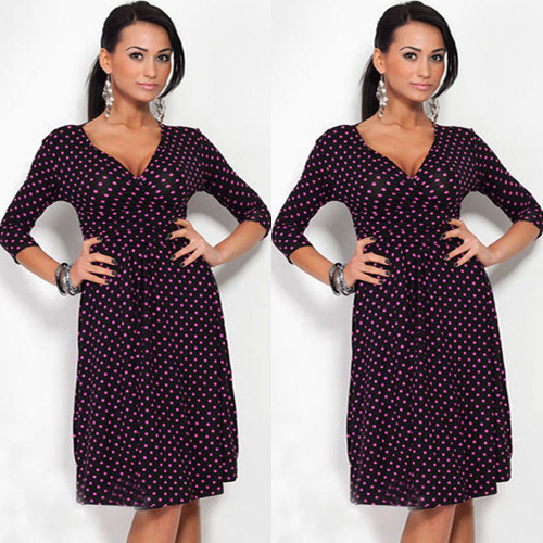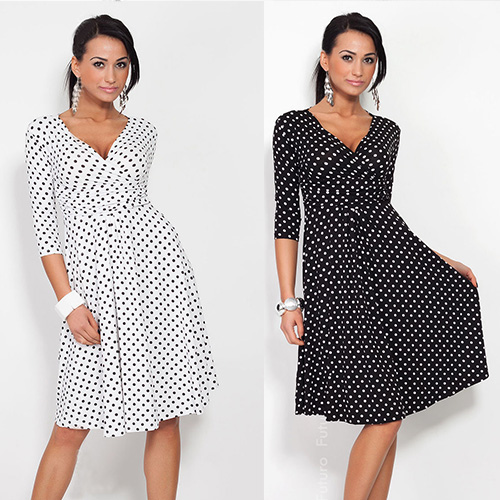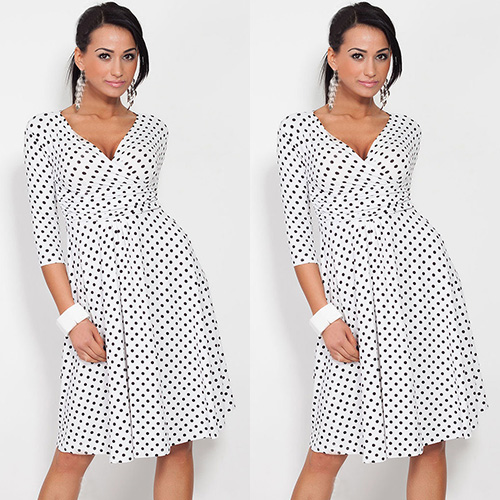 dots floral print with a v-neck and high waist design. Pair it with your favorite pumps to be