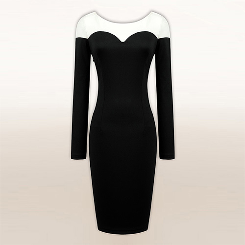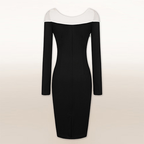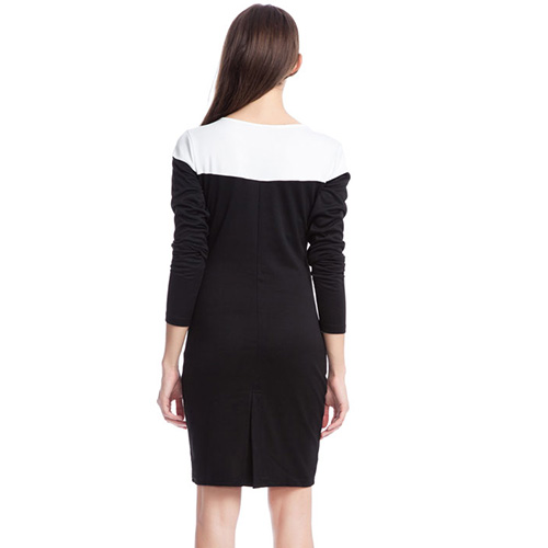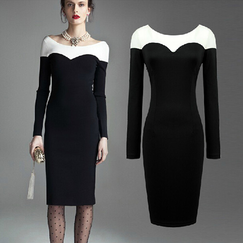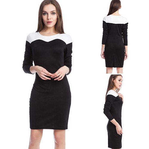 Don't know what to wear to go to work? Then choose this dress. It not only can show your elegant temperament,but also can show your slender figure. Features contrast color,fashion round neck,long sleeve and slim fit. Pair it with you black high-heeled shoes.