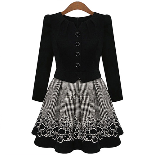 high waist and big hemline design. Unique mock two-piece style makes it more elegant