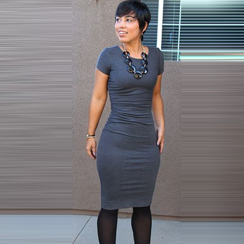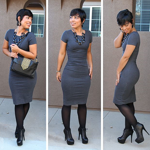 bodycon silhouette and features a round neckline. It's feminine, figure-hugging, and will help you get