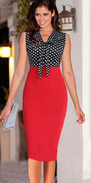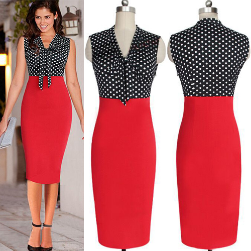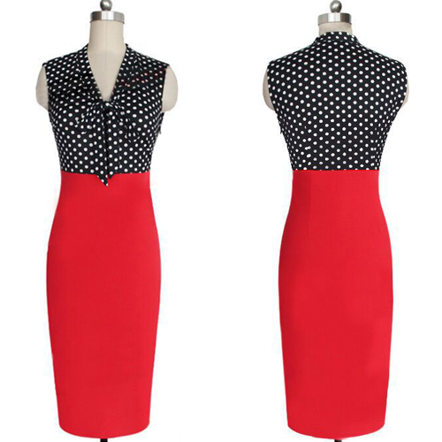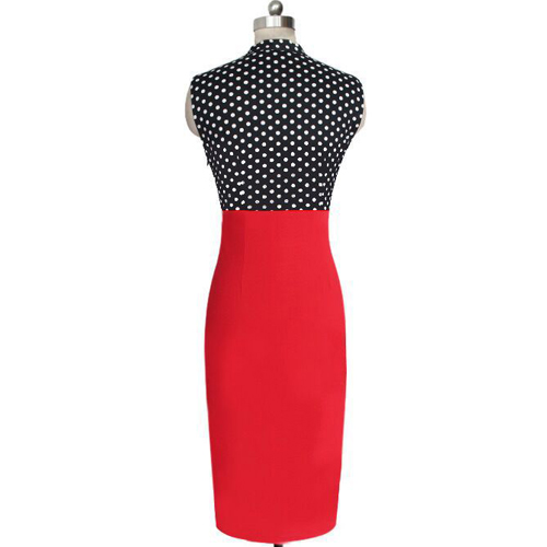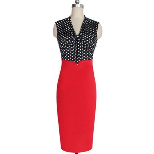 Dots printed style,with sleeveless,v-neck,high waist and slim fit design,this dress