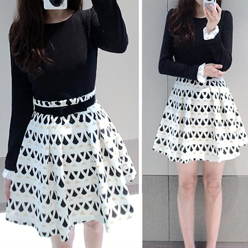 No matter for shopping,dating or working,it is a good choice for you. Features spliced style,fashion round neck and long sleeve design. Gathered waist with waistband design showing your slender figure. Perfect for spring and fall wearing.