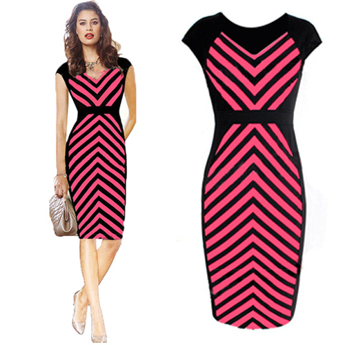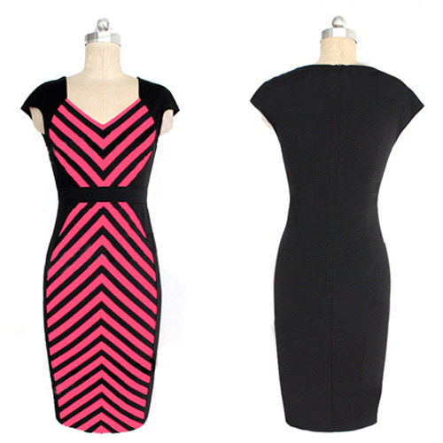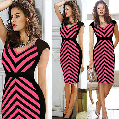Show your elegant temperament and charming style through this dress. It features stripes pattern,fashion and popular. Sexy v-neck,short sleeve,high waist and slim fit design,perfect outline your slender figure. Fit for different occasions wearing.