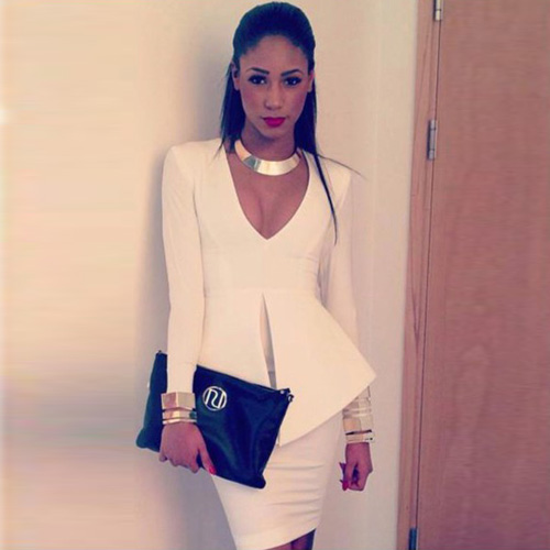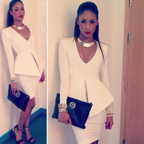 This dress features solid color style,looks generous and elegant. V-neck,long sleeve,slim fit and package hip design,