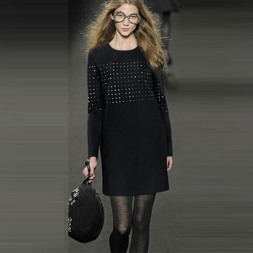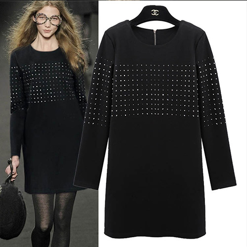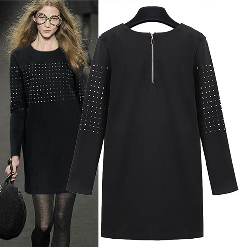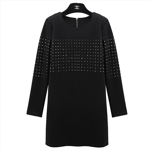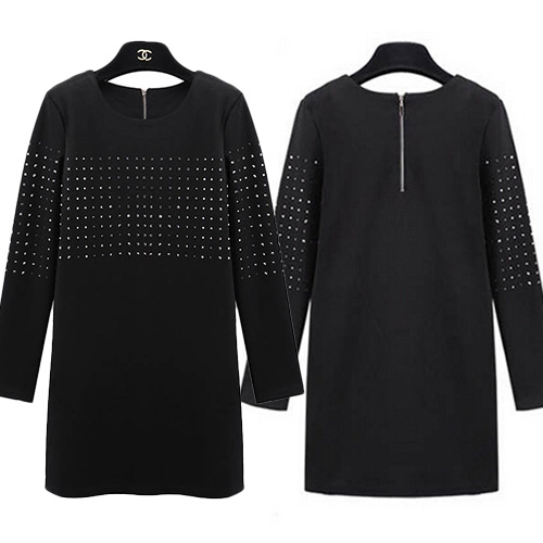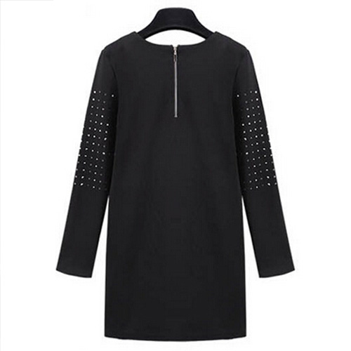 Decorated with rivets design and equipped with long sleeve and round neck style,