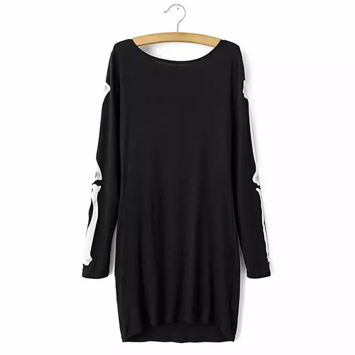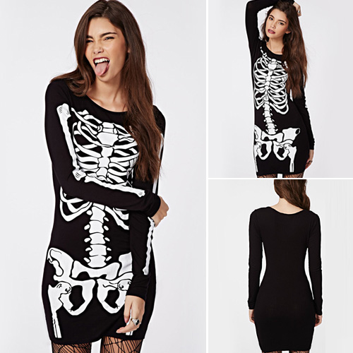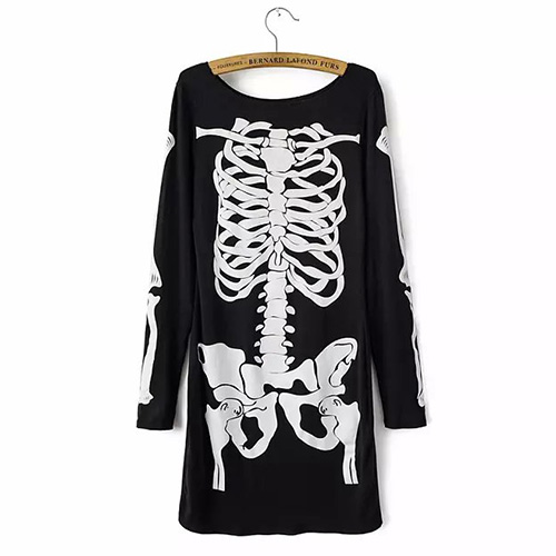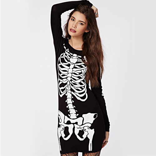 This dress features punk style skeleton floral print pattern,chic and unique. Long sleeve,round neck,