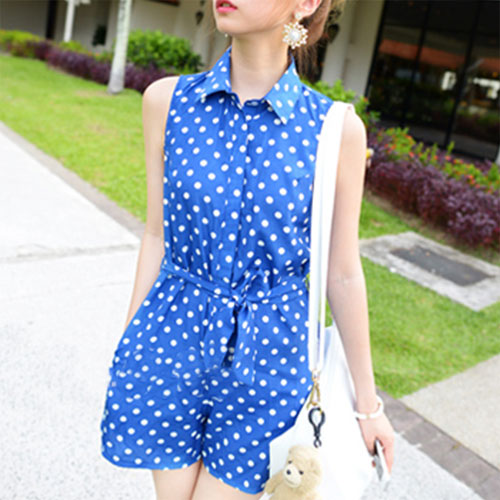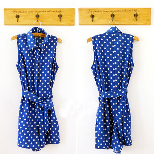 Show your sweet style and fashion flavor with this jumpsuit dress. Crafted from sheer chiffon material,skin-friendly and comfortable to wear. With retro dots pattern,sleeveless and POLO collar design. Equipped with a waistband to help show your slender waist. No matter for working,schooling,shopping or travelling,this jumpsuit will make you unique!