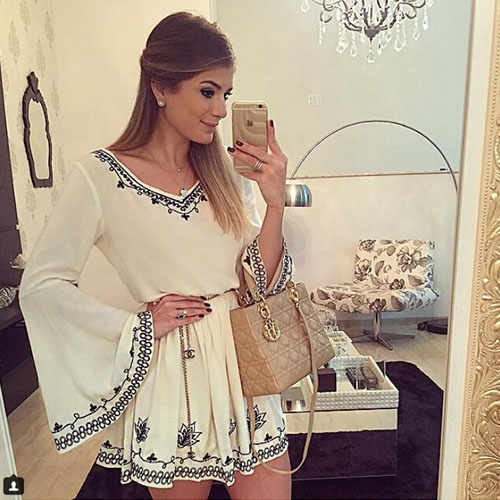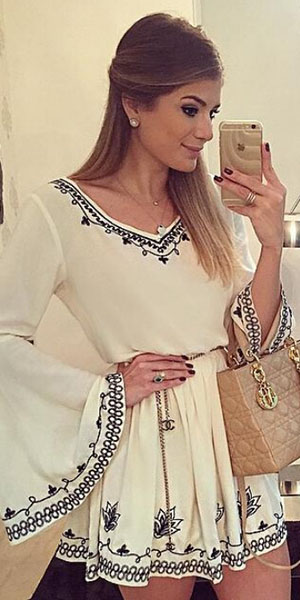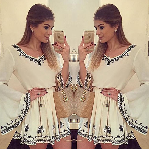 and retro and delicate embroidery makes it more eye-catching,while its v-neck design gives the