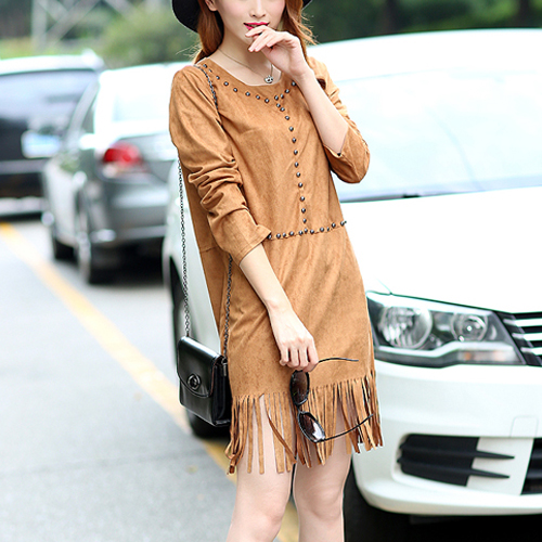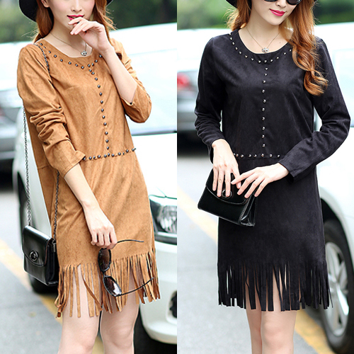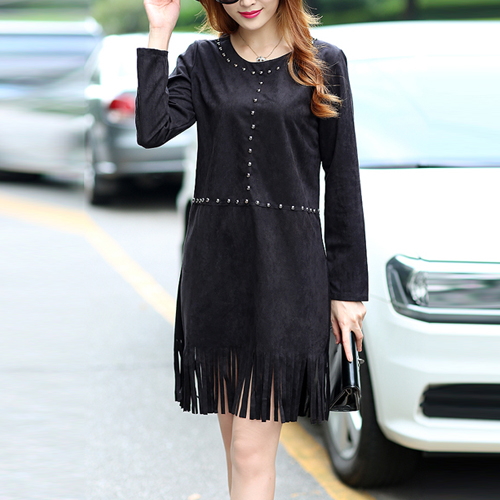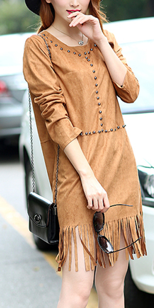 Crafted from high quality faux suede material,this long sleeve dress can give you a stylish and