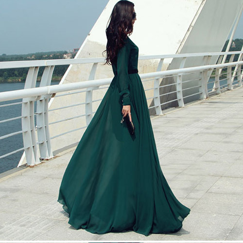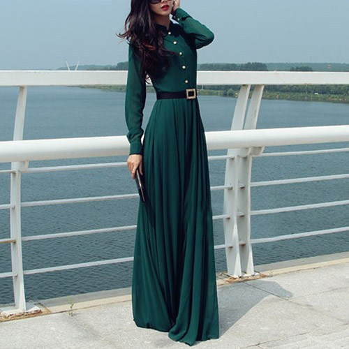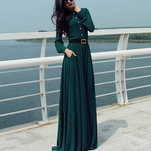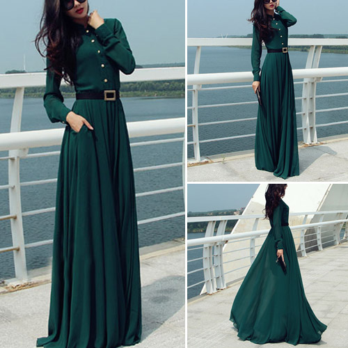 It features solid color,long sleeve and flowing floor-length hemline design. With waistband,help show your slender figure.