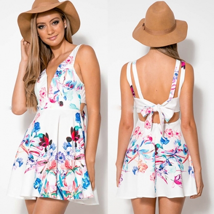 tribal prints,with backless bowknot and v-neckline design. You'll be stunning under the sun in