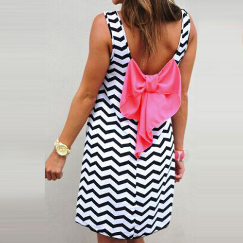 polished and modern all at once! Wave-stripe style,with backless design. Bowknot design at the back