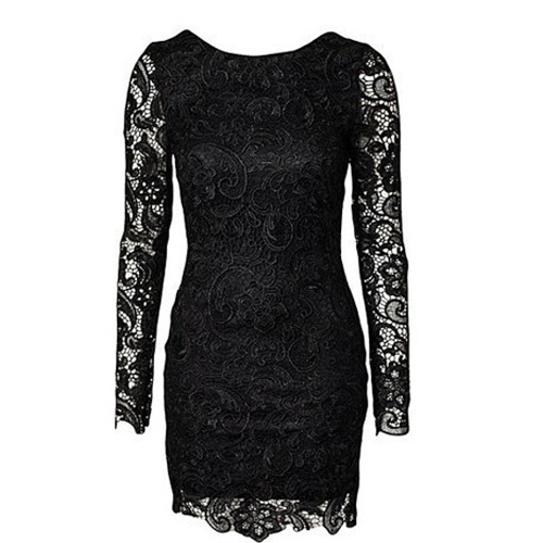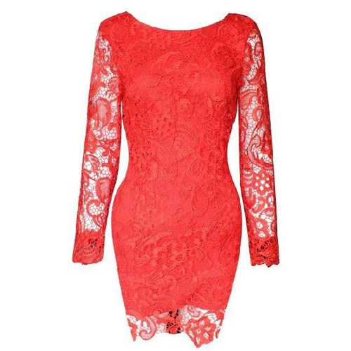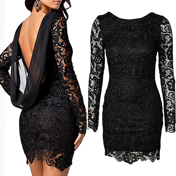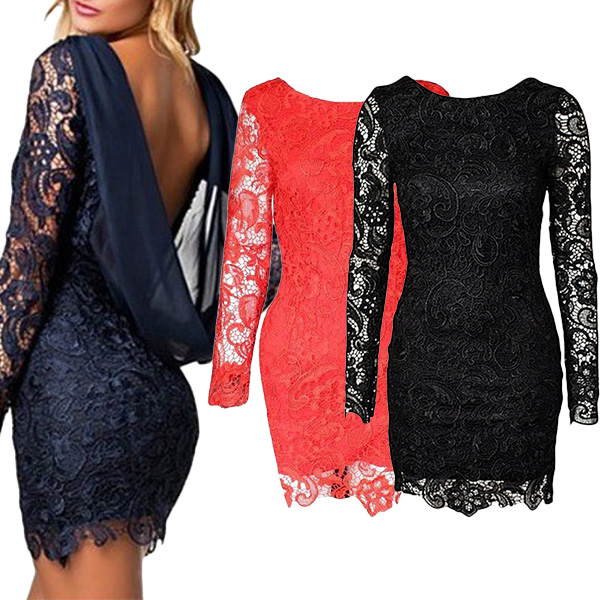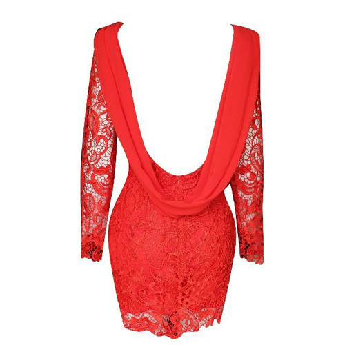 You are elegant enough in this dress. It is combination of lace and chiffon elements,filled with feminine and sweet flavor. Backless style,with chiffon spliced design,sexy and chic. Sleeve and hemline with hollow out lace. Slim fit and package hip design,perfect outline your seductive curve.