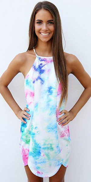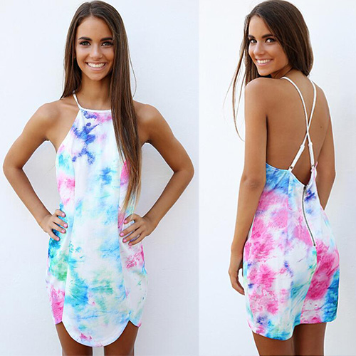 This sling dress is outfitted with colorful floral print,with adjustable straps and crossover